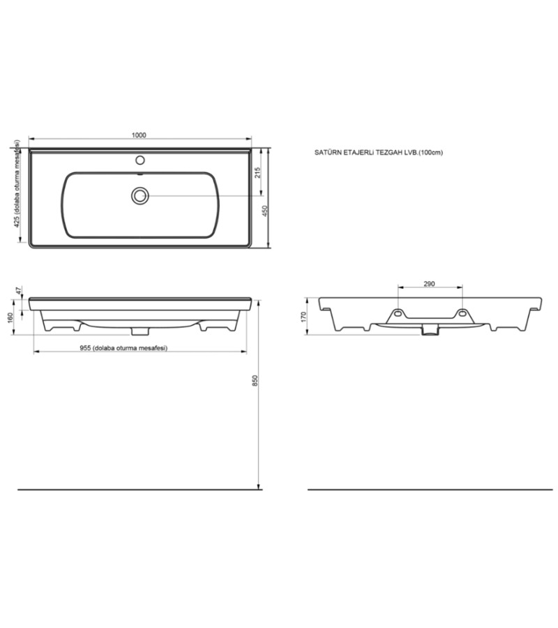 Home Bathroom and toilet Washbasins Bathroom furniture towel 100 cm SATURN color. MATT ANTHRACITE CERAMICS