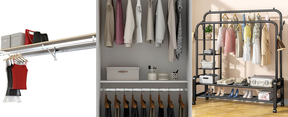 გადავიდეთ ტანსაცმელზე - თუ პინტერესტზე ინსპირაციულ და ტრენდულ ფოტოებს გადააწყდით და გადაწყვიტეთ, რომ გარდერობს ტანსაცმლის საკიდი გირჩევნიათ, რამდენიმე ვარიანტს შემოგთავაზებთ. პირველია კედელზე დასამაგრებელი საკიდი, რომელიც როგორც წესი, სტანდარტულზე მაღლა დამონტაჟდება. იდეალურია ქურთუკებისთვის, კაბებისთვის და გრძელი ტანსაცმლისთვის. მეორე ვარიანტია ორმაგი ტანსაცმლის საკიდი, რომელიც ასევე კედელზე დამონტაჟდება, თუმცა ორი განყოფილებით, ზედა და ქვედა. ზემოთ შეგიძლიათ, როგორც წინა შემთხვევაში, გრძელი ტანსაცმელი დაკიდოთ, ქვემოთ კი პერანგები, მაისურები, რომლებიც ადვილად იკუჭება ან კლასიკური შარვლები. მესამე ვარიანტია მოძრავი ტანსაცმლის საკიდი, რომელიც სულ უფრო და უფრო პოპულარული ხდება. მისი გადაადგილება მარტივია, შეგიძლიათ დღეს ოთახის ერთ წერტილში დადგათ, ხვალ კი მეორეში. ამასთან, არსებობს უამრავი ფერის, ფორმის, სიგრძის და სიგანის მოდელები, რომლებიც შეგიძლიათ, თქვენი ბიუჯეტისა და გემოვნების გათვალისწინებით შეარჩიოთ.