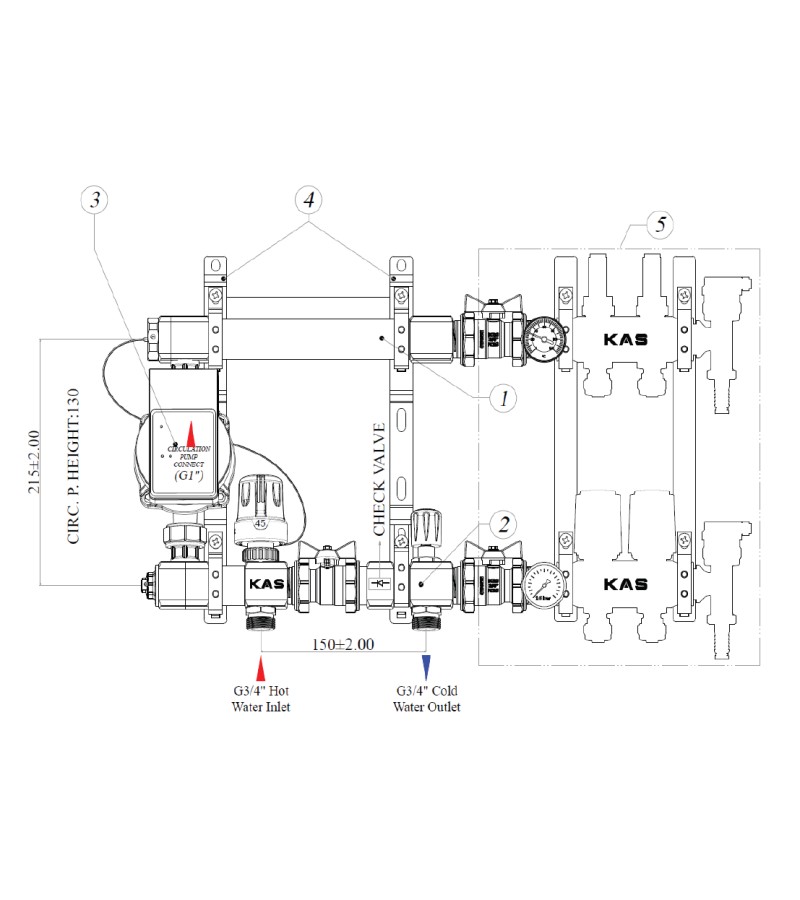 KAS 2001002 კომპაქტური შერევის წრე (ტუმბოს გარეშე) გამოიყენება იატაკქვეშა გათბობის სისტემებში.