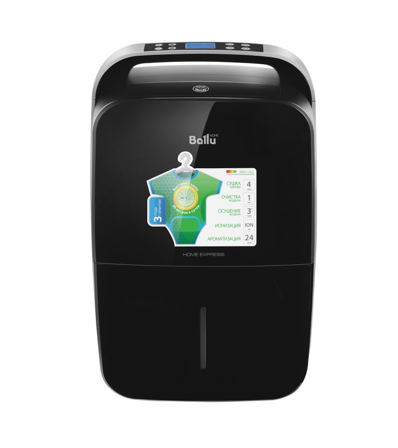 Ballu BD30MN ჰაერის ტენიაობის გამომშრობი მულტიკომპლექსი წარმოდგენილია შავ კორპუსში, მოწყობილობის კლასიკური დიზაინი ნებისმიერ ინტერიერს ერგება. მოდელების სიმძლავრეა 540 მ³/საათში, რაც საშუალებას აძლევს შეაგროვოს დღეში 30 ლიტრამდე ტენიანობა. აქვს მაღალი ენერგოეფექტურობის კლასი. ჩაშენებული ჩართვისა და გამორთვის ტაიმერის წყალობით, მოწყობილობას შეუძლია იმუშაოს მაშინ, როდესაც სახლში ყველა სძინავს - მოიხმარს ელექტროენერგიას ეკონომიური „ღამის ტარიფის“ შესაბამისად. ამავდროულად, მისი მუშაობის ხმაური მხოლოდ 45 დბ (A)-ია, რაც იმას ნიშნავს, რომ ის არ შეაწუხებს მისი მფლობელების ძილს. ჰაერის იონიზაციის ფუნქცია ხელს უწყობს გაციების თავიდან აცილებას და ჰაერის გაუმჯობესებას დახურულ ოთახშიც კი. მისი არომათერაპიასთან შერწყმა მარტივია - მით უმეტეს, რომ Ballu-ს საშრობი მულტიკომპლექსი აღჭურვილია ეთერზეთებისთვის განკუთვნილი სპეციალური კაფსულით. მოდელი მარტივი გამოსაყენებელია და გადასაადგილებელია, ხოლო კორპუსის გამარტივებული ფორმა ბასრი კუთხეების გარეშე მას უსაფრთხოს ხდის ბავშვებისთვის.