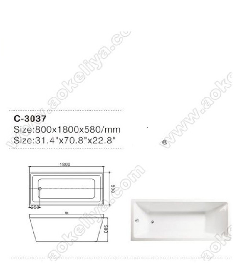 პლასტმასის აბაზანა C-3037 ზომა. 80*180*58 სმ Aokelya