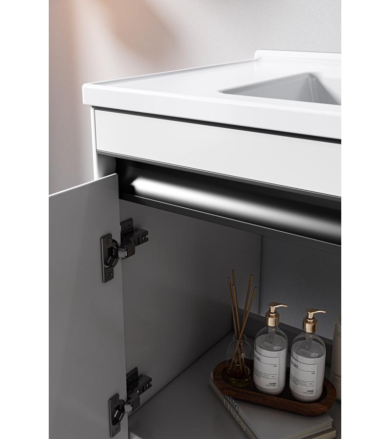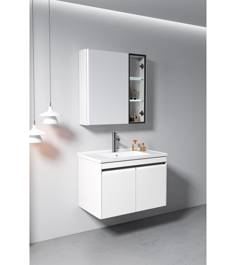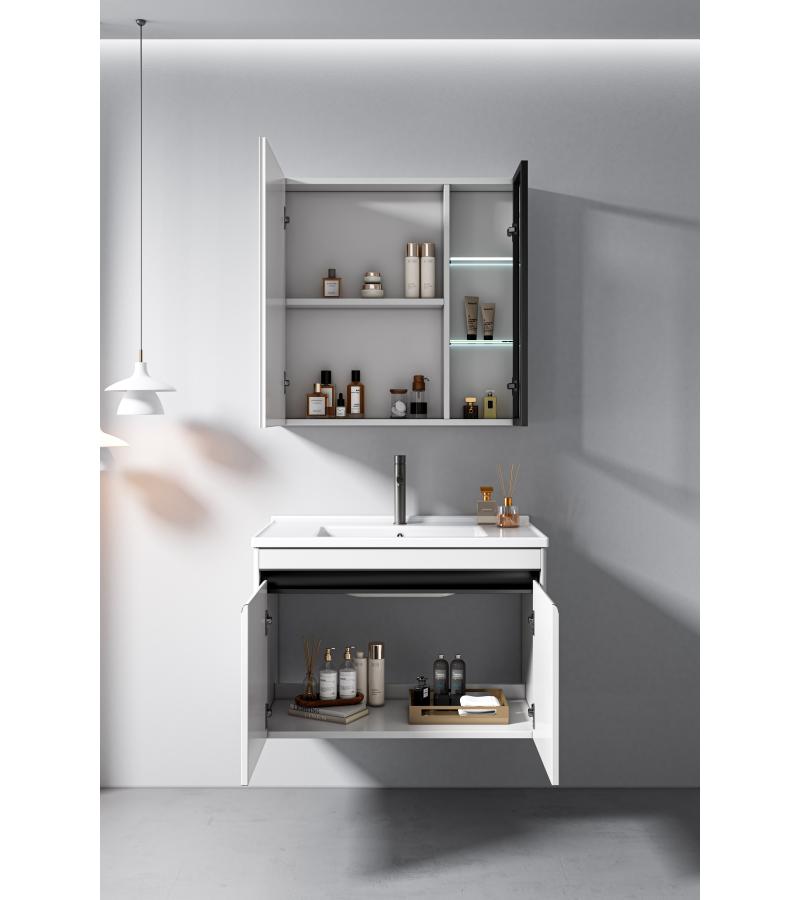 მოდელი #111-60 წარმოადგენს თანამედროვე დიზაინის სააბაზანო ავეჯის კომპლექტს, რომელიც იდეალურია როგორც მცირე, ასევე საშუალო ზომის აბაზანებისთვის. კომპლექტი შედგება სარკის კარადისა და ძირითადი კარადისგან. მინიმალისტური დიზაინი და გამძლე მასალები აერთიანებს ფუნქციურობასა და ესთეტიკას, რაც ამ ავეჯს იდეალურ არჩევანად აქცევს ნებისმიერი ინტერიერისთვის.