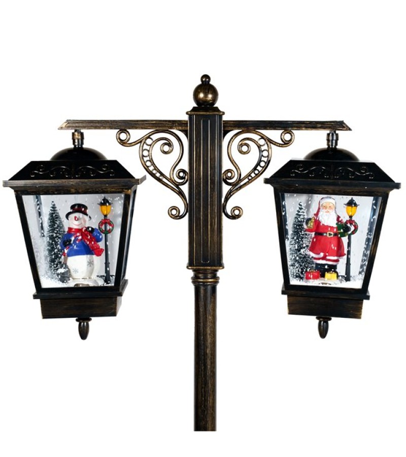მანათობელი საახალწლო ლამპიონი სიმაღლით 188 სმ დაამშვენებს თქვენი სახლის ინტერიერს. ხოლო მუსიკალური ხმები სადღესასწაულო განწყობას აგიმაღლებთ. ლამპიონის შიგნით დამაგრებულია საახალწლო ფიგურა და აქვს თოვლის ფრქვევის ეფექტი. დეკორაცია დამზადებულია პლასტმასისგან და ქმნის მეტალის ეფექტს.