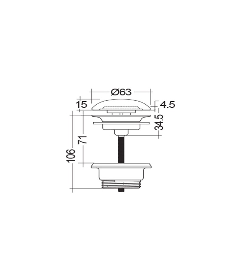 სიფონის კერამიკული თავი POP-UP სისტემით, გადმოდინების გარეშე.