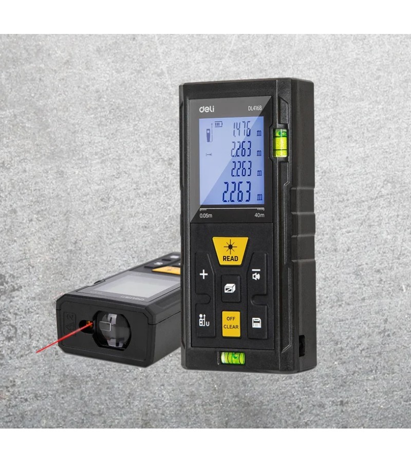 Deli DL4168 არის პროფესიონალური საზომი ხელსაწყო, რომელიც უზრუნველყოფს ზუსტ, სწრაფ და კომფორტულ საზომს ყოველდღიური და ტექნიკური სამუშაოებისთვის. ინოვაციური ორმაგი ლაზერის ტექნოლოგია, მაღალი გარჩევადობის ეკრანი და მონაცემთა მეხსიერება მას იდეალურ ინსტრუმენტად აქცევს არქიტექტორების, ინჟინრების, ხელოსნებისა და დიზაინერებისთვის.