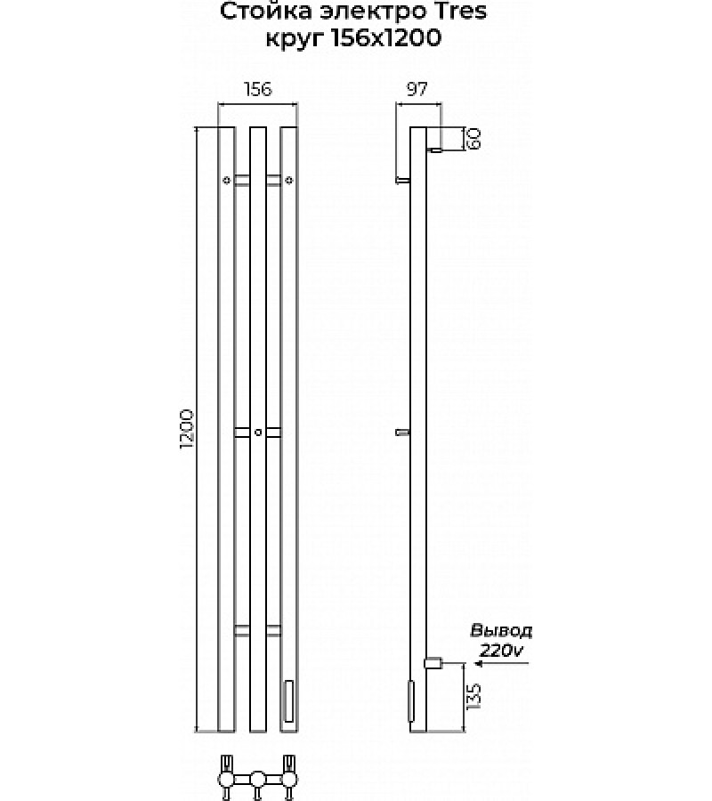 Электрическая сушилка с диммером TRES круглая 1200 RAL 9003 белый горький. TERMINUS