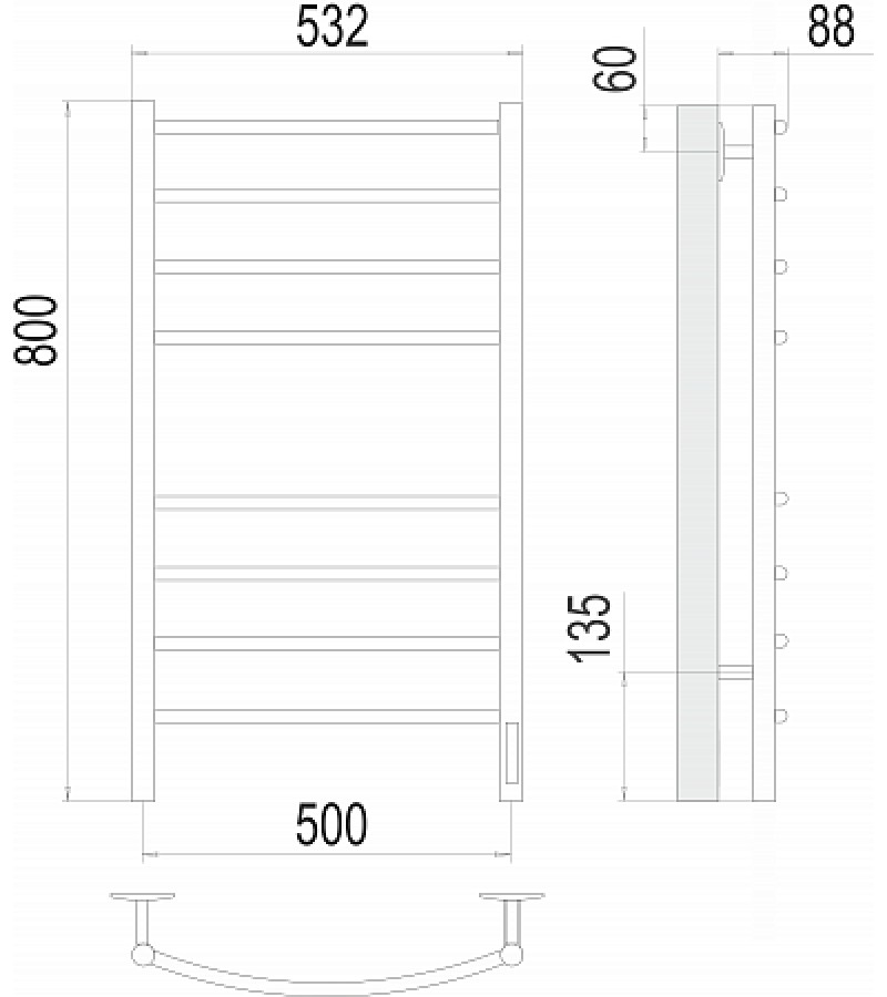 Электросушилка с диммером Классик П8 500х800 RAL 9003 белый горький. ТЕРМИНУС
