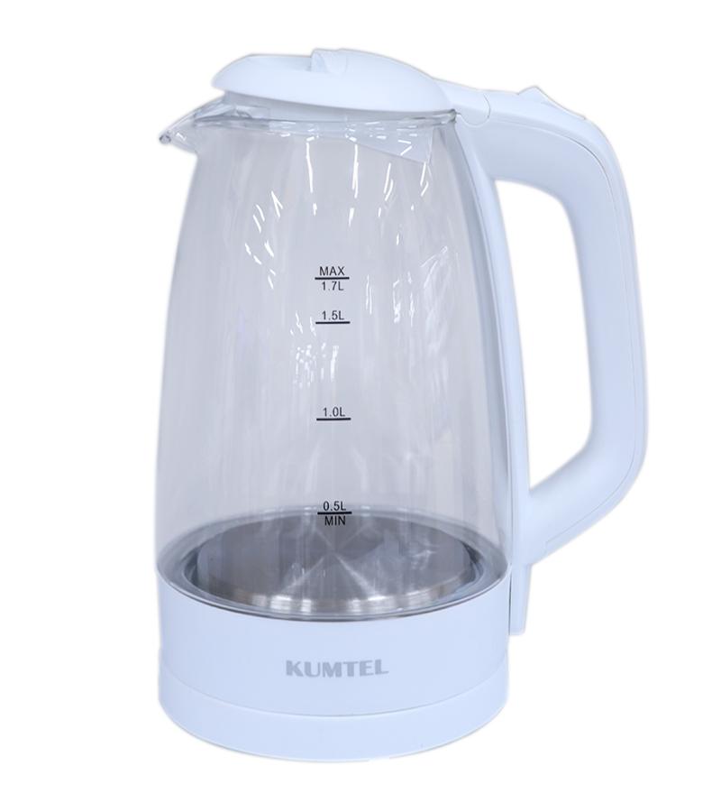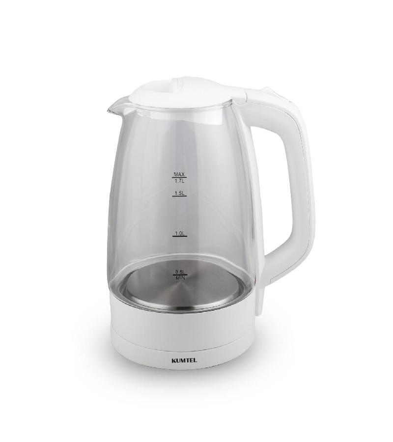 ელექტრო ჩაიდანი KUMTEL HMK-02 WHITE არის 1.7 ლიტრი მოცულობის, თეთრი დიზაინის, მინის კორპუსით.