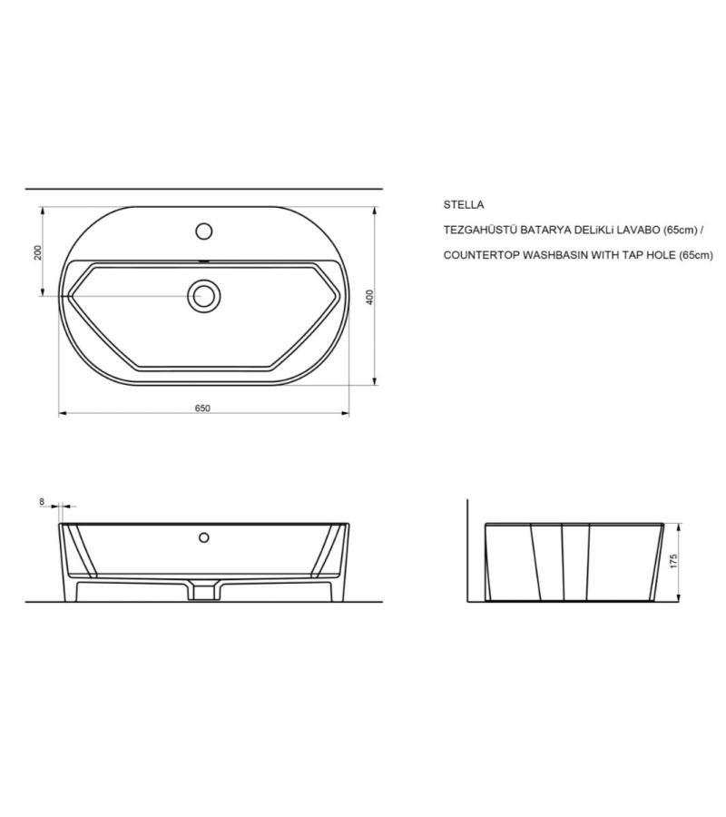 Home Bathroom and toilet Washbasins Towel oval STELLA COUNTERTOP 65 cm dark. SERAMIKSAN