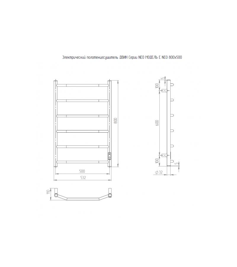 Electric dryer with dimmer E neo 800*500 nickel brown. DVIN