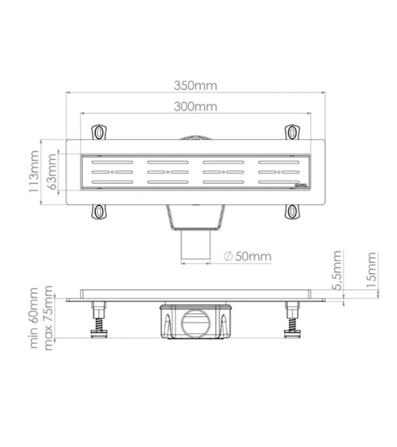 Trap with screws CLASSIC SERIE 50 cm #1001-10050-S01 bitter. AQUA ZONE