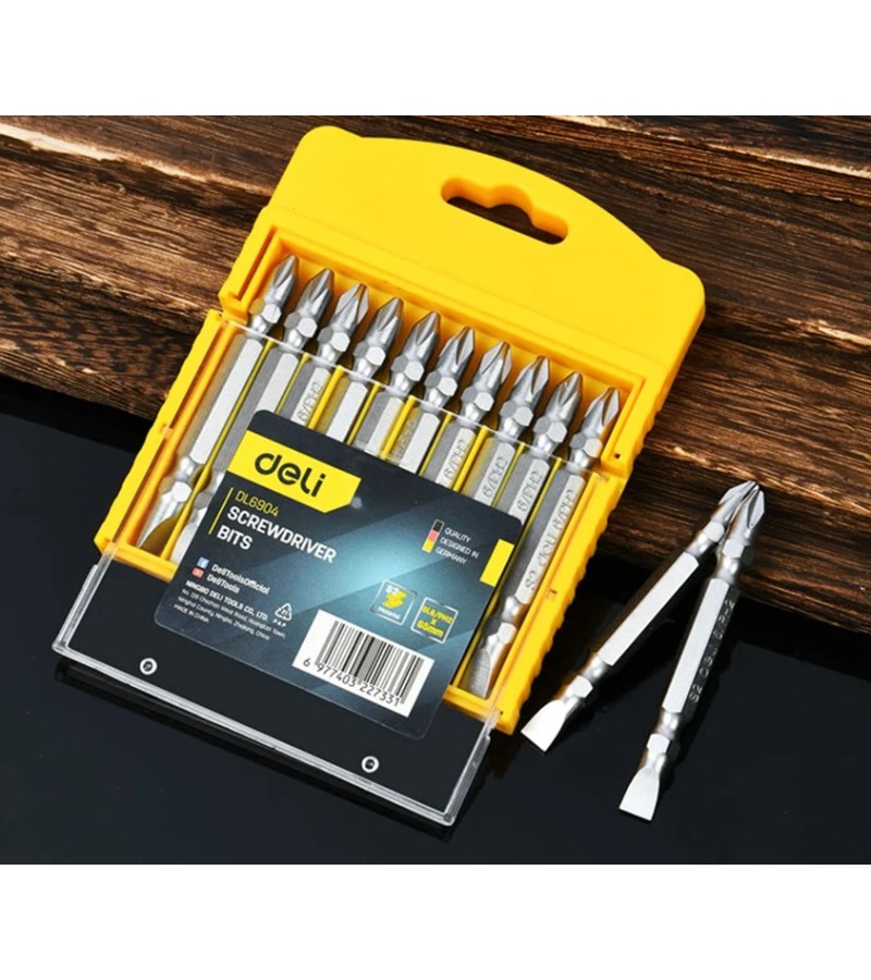 სახრახნისის ორმხრივი პირების ნაკრები 10ც SL6/PH2x65მმ DL6904 მწარ. d e l i