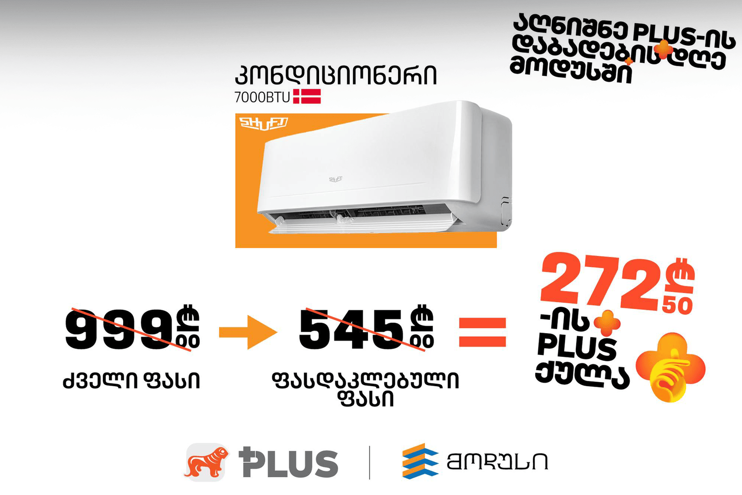 არ უნდა გამოგვრჩეს ისიც, რომ მოდუსის შიდა აქციებით შემცირებულ ფასზე, კიდევ უფრომეტ სარგებელს მიიღებთ! რაც არ უნდა წარმოუდგენელი იყოს, დანიური ბრენდის კონდიციონერს, მხოლოდ 272.5 ლარის PLUS ქულებით შეიძენთ.