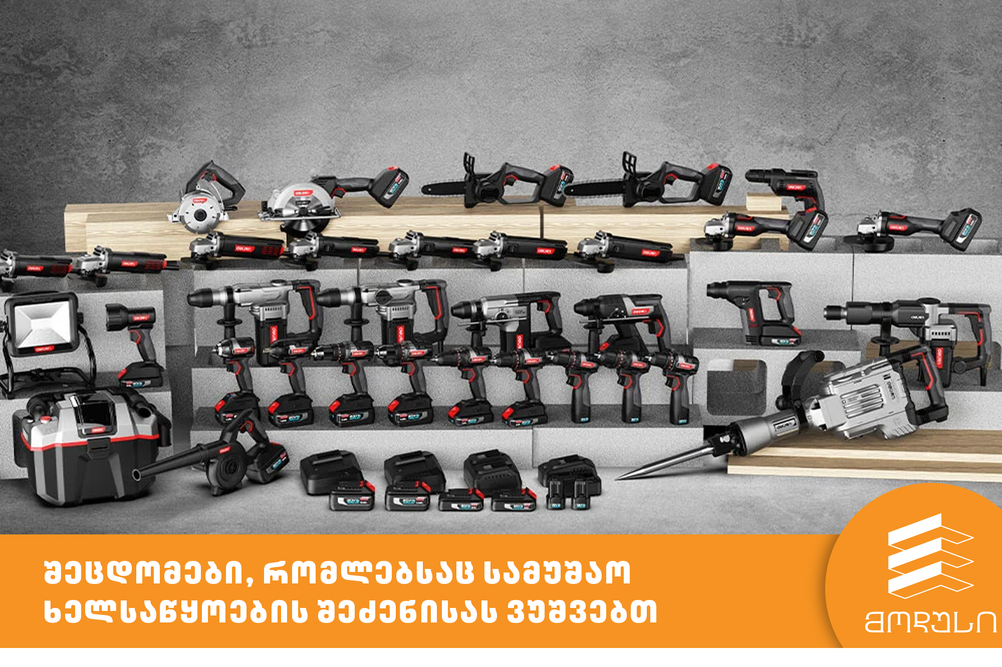 - ელექტრო ინსტრუმენტები (დრელები, ხერხები, სარემონტო ტექნიკა);