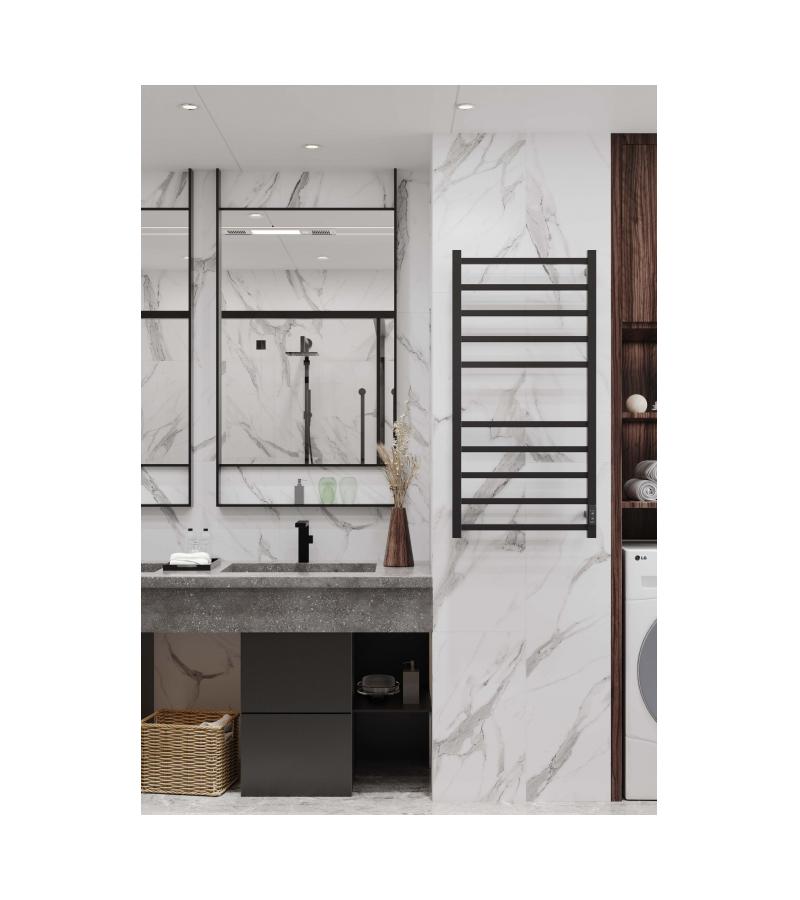 ელექტრო საშრობი დიმერით L Plaza Neo 600*400 შავი (DVIN) წარმოადგენს თანამედროვე და ფუნქციურ მოწყობილობას, რომელიც შექმნილია პირსახოცებისა და ხალათების ეფექტური და გაშრობისა და გათბობისთვის. მისი უნიკალური დიზაინი და უჟანგავი ფოლადის მასალა არამხოლოდ სითბოს უკეთესი გადაცემის საშუალებას იძლევა, არამედ ვიზუალურადაც სრულყოფილად ერგება ნებისმიერ ინტერიერს.