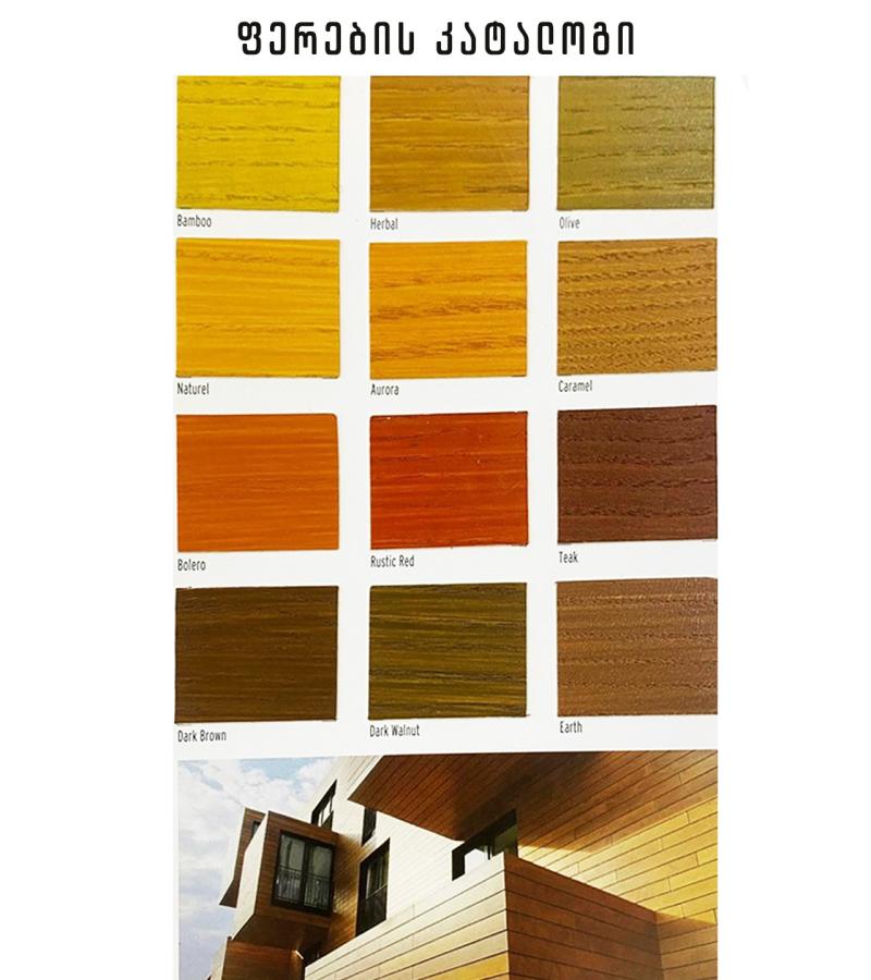 - დანახარჯი: 10-14 მ² ფართობზე ერთ ფენაში 1 ლიტრით, ხის ტიპისა და შთანთქმის მიხედვით