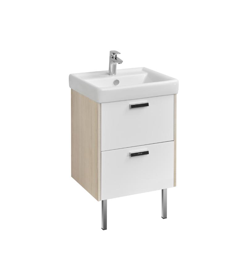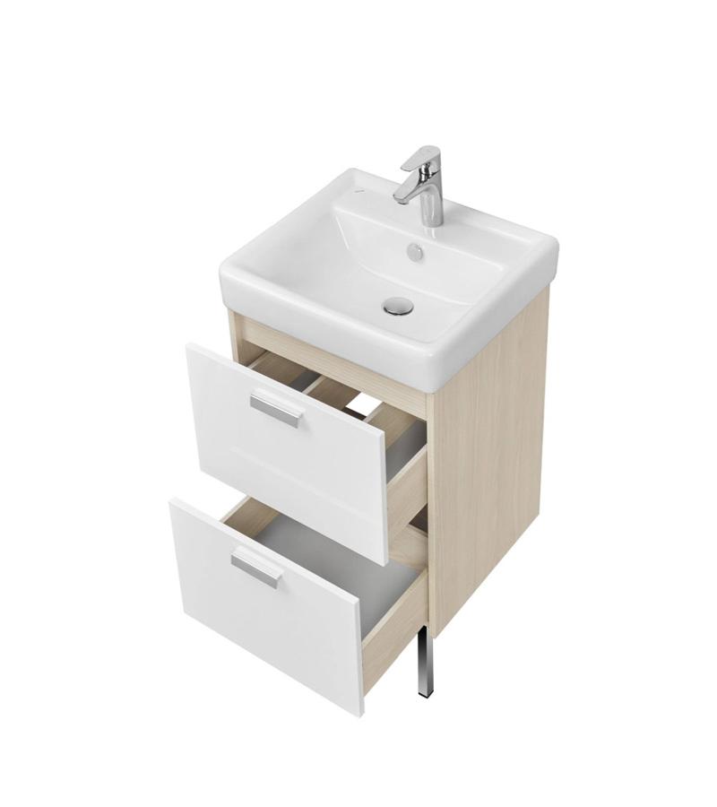 სააბაზანოს ავეჯის კომპლექტი AQUATON-ის ბრენდისგან. ხელსაბანის კარადა ИОРК 55 კარადა+ხელსბ.Тигода-55 გახლავთ დასადგამი ტიპის. კარადა დამზადებულია მაღალი ხარისხის მდფ-ისგან, დაფარული პრიალა ფირით. აქვს ორი ფართო უჯრა სივრცის ერგონომიული ორგანიზებით, რომელიც შეიძლება მორგებული იყოს თქვენს კომფორტზე. უჯრები იხსნება მოსახერხებელი სახელურით, ხოლო საკეტები უზრუნველყოფილია გლუვი დახურვით, რაც უზრუნველყოფს ავეჯის მშვიდად და კომფორტულ გამოყენებას. კომპლექტაციაში შედის ხელსაბანი კარადა და ხელსაბანი.