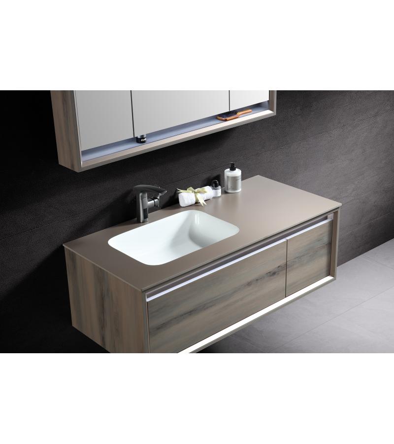სააბაზანოს ავეჯის კომპლექტი GDOSTON-ის ბრენდისგან. ხელსაბანის კარადა, აბაზანის კარადა სარკე Led განათებით და სესნსორული ჩართვით, ჩამოსხმული ქვის ნიჟარა.