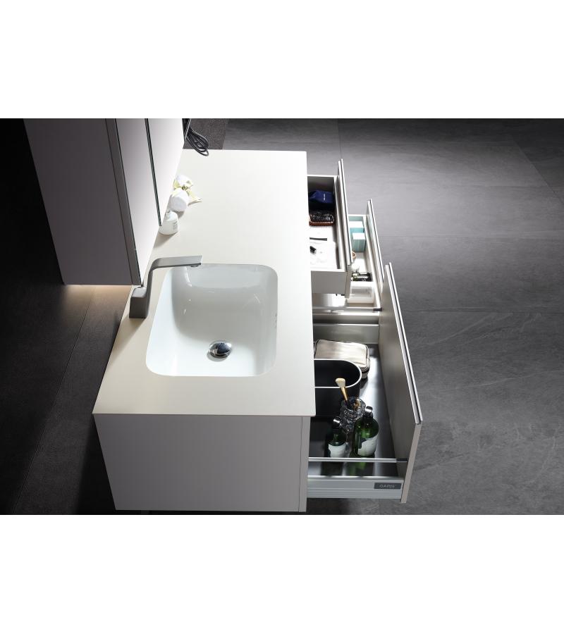 სააბაზანოს ავეჯის კომპლექტი GDOSTON-ის ბრენდისგან. ხელსაბანის კარადა, აბაზანის სარკე Led განათებით და სენსორული ჩართვით, ხელსაბანის ნიჟარა.