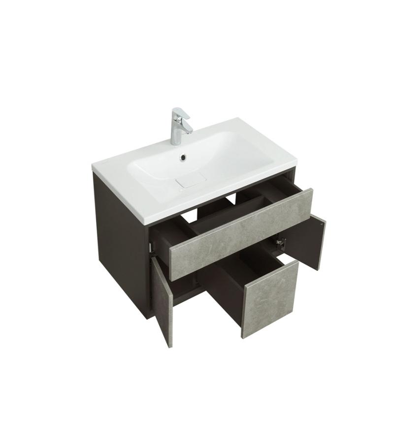სააბაზანოს ავეჯის კომპლექტი AQUATON-ის ბრენდისგან. ხელსაბანის კარადა Уэльс 80, სარკე Уэльс 80 და ხელსაბანი Брук 800 გახლავთ დასაკიდი ტიპის. კარადა დამზადებულია მაღალი ხარისხის მდფ-ისგან, დაფარული მქრქალი ფირით. აქვს ორი ფართო უჯრა სივრცის ერგონომიული ორგანიზებით, რომელიც შეიძლება მორგებული იყოს თქვენს კომფორტზე. უჯრები იხსნება მოსახერხებელი სახელურით, ხოლო საკეტები უზრუნველყოფილია გლუვი დახურვით, რაც უზრუნველყოფს ავეჯის მშვიდად და კომფორტულ გამოყენებას. კომპლექტაციაში შედის აბაზანის სარკე და ხელსაბანი.