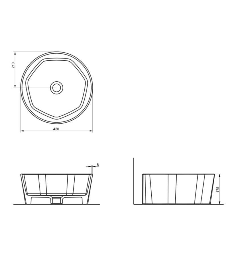 მრგვალი ფორმის, ზედაპირზე დასადგამი ხელსაბანი სააბაზანოსთვის.