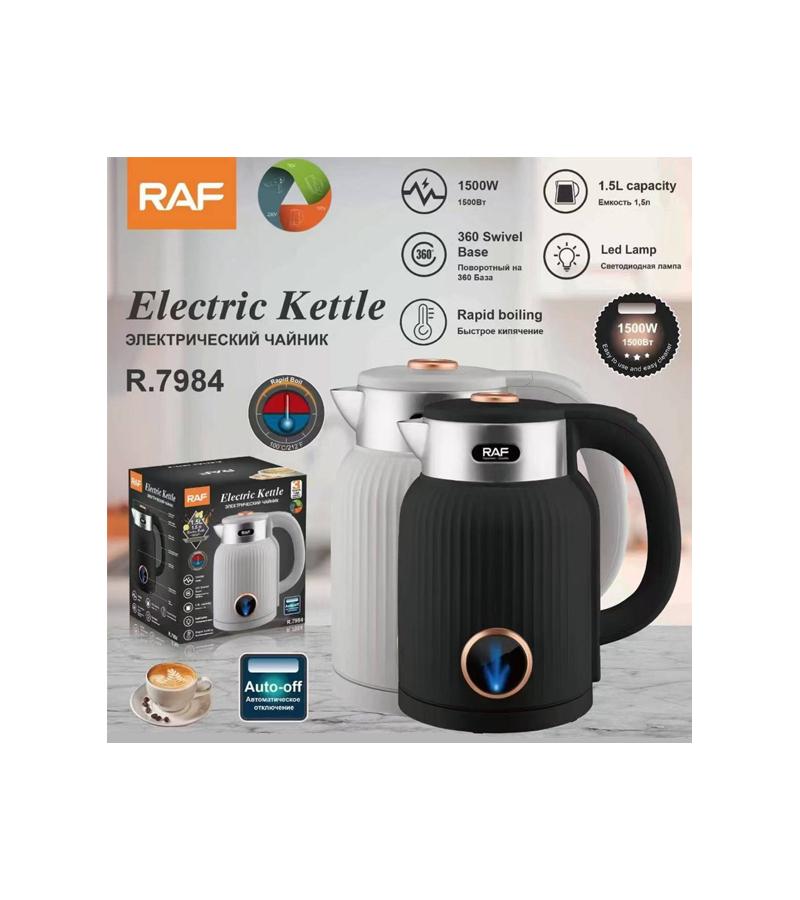 ჩაიდანი ელექტრო R.7984 ჩაიდანი 1.5 ლიტრიანი ტევადობით და 1500W სიმძლავრით, 360 გრადუსით მბრუნავი კორპუსი. უზრუნველყოფს წყლის სწრაფად ადუღებას, ამცირებს ლოდინის დროს. ოპერაციული ინდიკატორის არსებობა უზრუნველყოფს მარტივად გამოყენებას და აადვილებს იმის დადგენას, როდის მიაღწია წყალმა სასურველ ტემპერატურას.