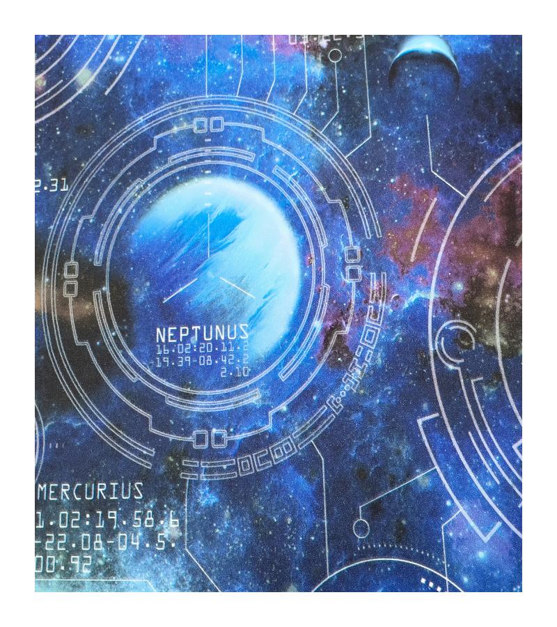 - ფერი: იასამნისფერი, კოსმოსის ნახატით