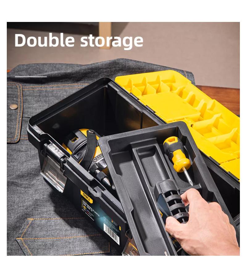 - ორმაგი ფენა: ორსართულიანი სტრუქტურა გაძლევთ შესაძლებლობას ინსტრუმენტები და პატარა ნაწილები უფრო მარტივად დაახარისხოთ და ეფექტურად გამოიყენოთ ინსტრუმენტების ყუთი.
