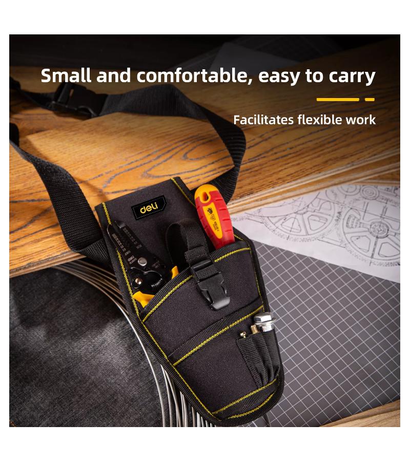 Deli DL430004 ხელსაწყოების ჩანთა არის გამძლე და პრაქტიკული პროდუქტი, რომელიც განკუთვნილია სხვადასხვა ზომისა და ტიპის ხელსაწყოების უსაფრთხო და ორგანიზებული შენახვისთვის. მისი კომპაქტური ზომა, 26x15 სმ, საშუალებას გაძლევთ მარტივად გადაადგილდეთ და გადაიტანოთ საჭირო ხელსაწყოები, იქნება ეს სახლის რემონტისა თუ პროფესიული საქმიანობისთვის.