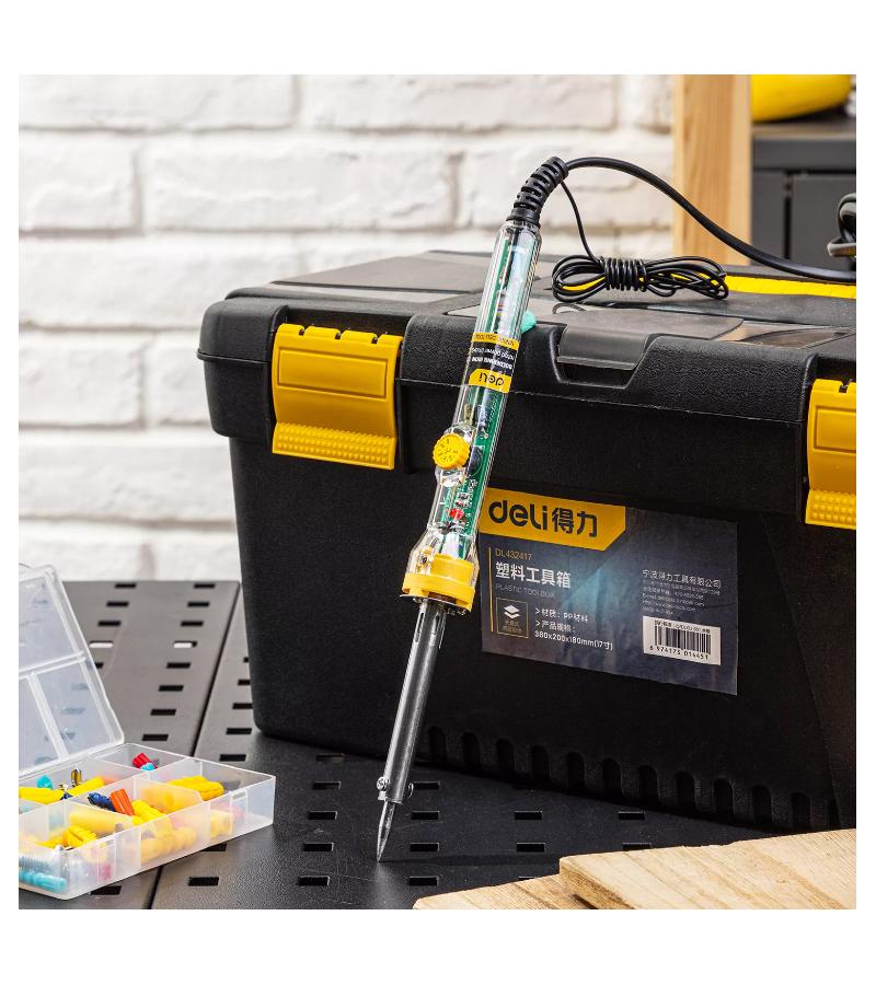 სარჩილავი (პაიალნიკი) DL8820, წარმოებული Deli-ს მიერ, არის 60W სიმძლავრის პროფესიონალური ხელსაწყო, რომელიც გამოიყენება ელექტრონიკის, ელექტროინსტალაციების და სხვა ტექნიკური სამუშაოების შესრულებისთვის. მისი გამძლე და კომპაქტური დიზაინი უზრუნველყოფს მაღალი ეფექტურობის და კომფორტული მუშაობის შესაძლებლობას.