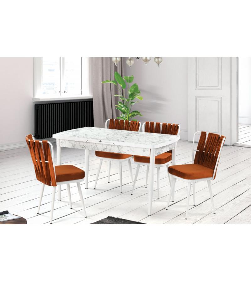 მაგიდა KELEBEK 80*130 სმ ფერი. BEYAZ MERMER მწარ. PARLAYAN KOC