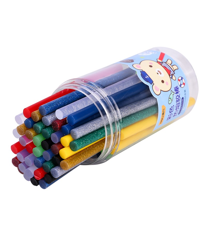 წებოს ფერადი ჯოხები 7მმ×100მმ×55ც DL390055B ფერადი EVA, ROHS მწარ. d e l i