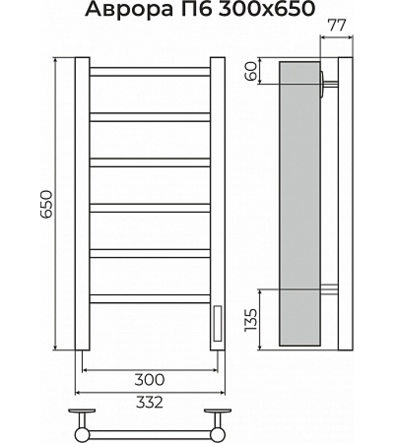 Электросушилка с диммером Аврора П6 300х650 хром темный. ТЕРМИНУС
