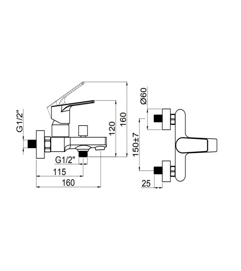 Смеситель для ванной настенный AZURE цвет золотистый #156805008 горький. АДЕЛЬ